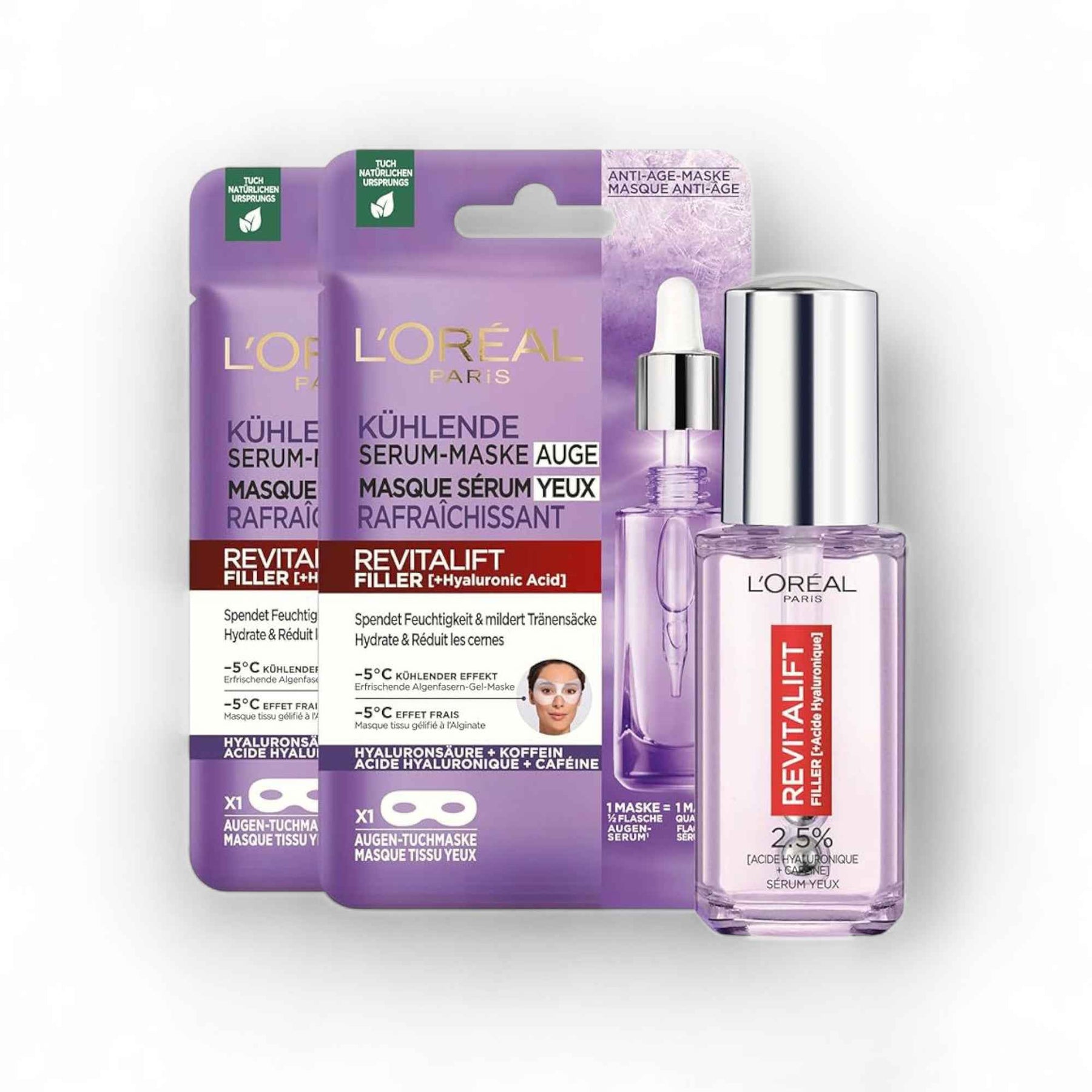 L’Oréal Paris Revitalift Filler Masque Yeux au Sérum – Acide Hyaluronique & Caféine – Effet Froid -5°C est une solution innovante pour revitaliser le contour de vos yeux. Spécialement conçu pour atténuer les signes de fatigue et prévenir le vieillissement prématuré de la peau, ce masque offre une expérience rafraîchissante et apaisante. Grâce à sa formule exclusive, il hydrate efficacement la peau délicate autour des yeux et améliore visiblement l'apparence des cernes.