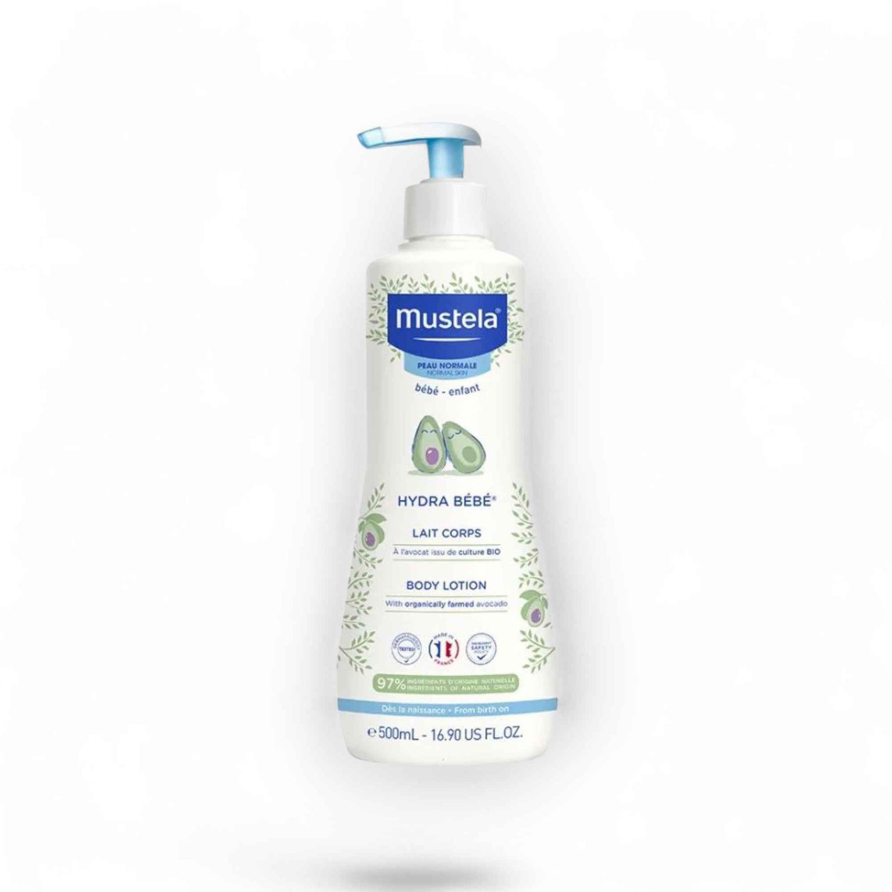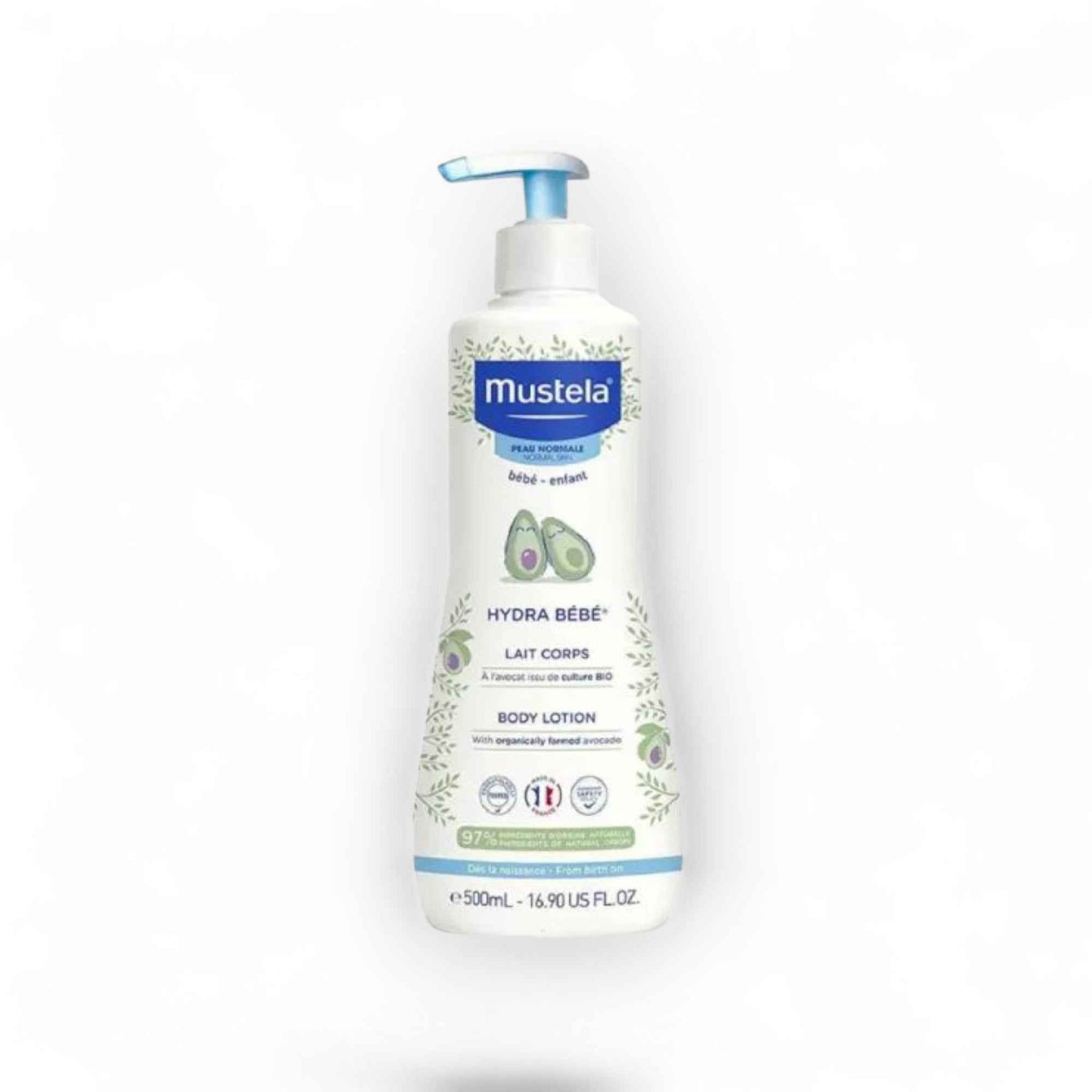 Mustela Hydra Bébé Lait Corps – Lait Hydratant Peau Normale – Avocat BIO – 500 ml.