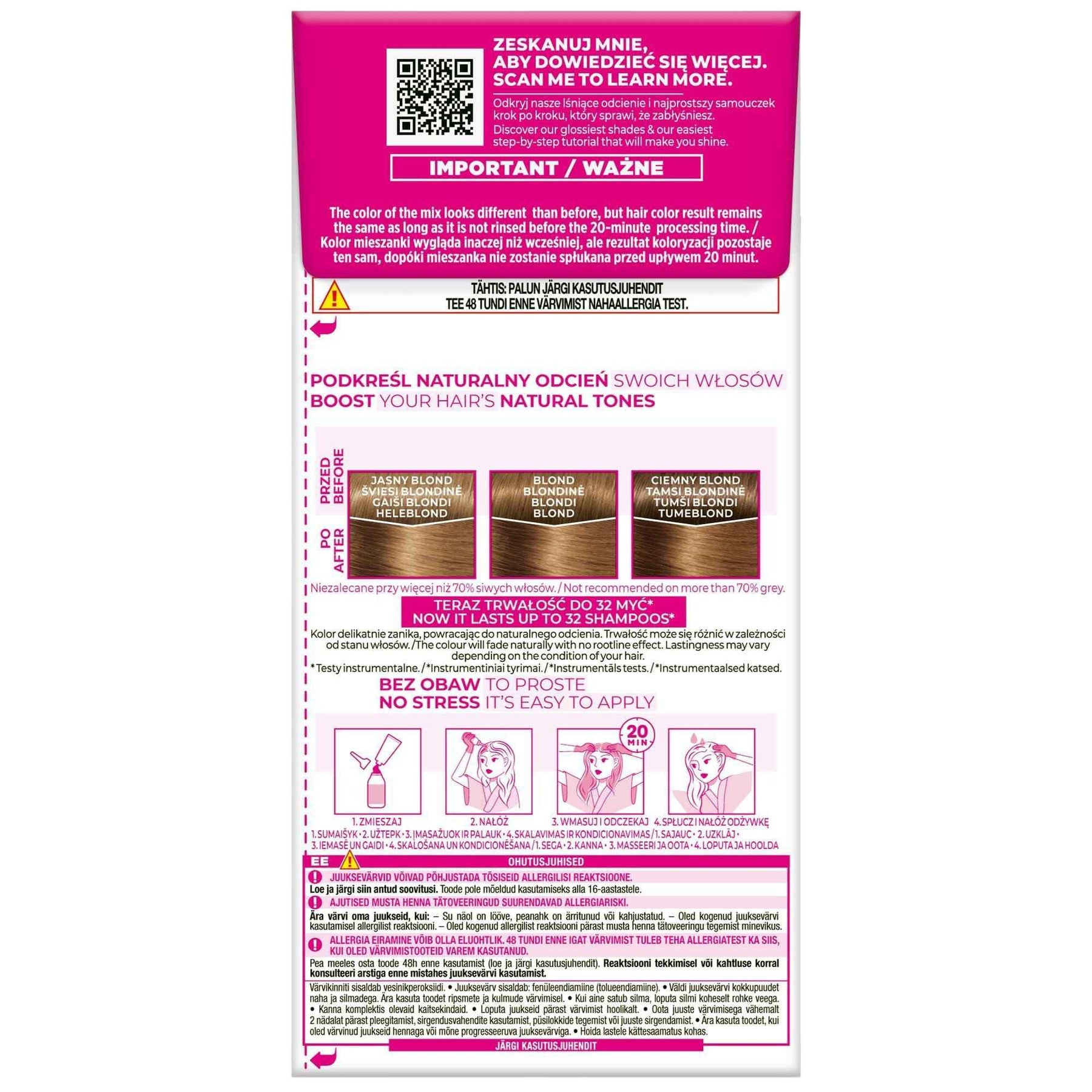 Avec une application facile et rapide, ce produit convient à tous les types de cheveux. Aucune expérience préalable en coloration n'est nécessaire, permettant à chaque femme de se sentir confiante en réalisant son propre changement de look.